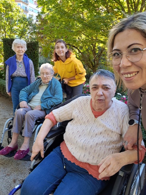 Par cette belle journée automnale les résidents de la passerelle sont sortis avec Sarah pour profiter de cette belle météo et de la douceur du paysage. Les sourires sont là.