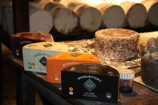 C’est au cœur de ce terroir qu’est né le Roquefort AOP. Ce fromage emblématique est protégé par un cahier des charges strict qui définit la zone de collecte du lait, les méthodes d’élevage des brebis Lacaune (seule race autorisée), les zones de fabrication des fromages et leur affinage qui ne peut se faire que dans les caves historiques de Roquefort-sur-Soulzon